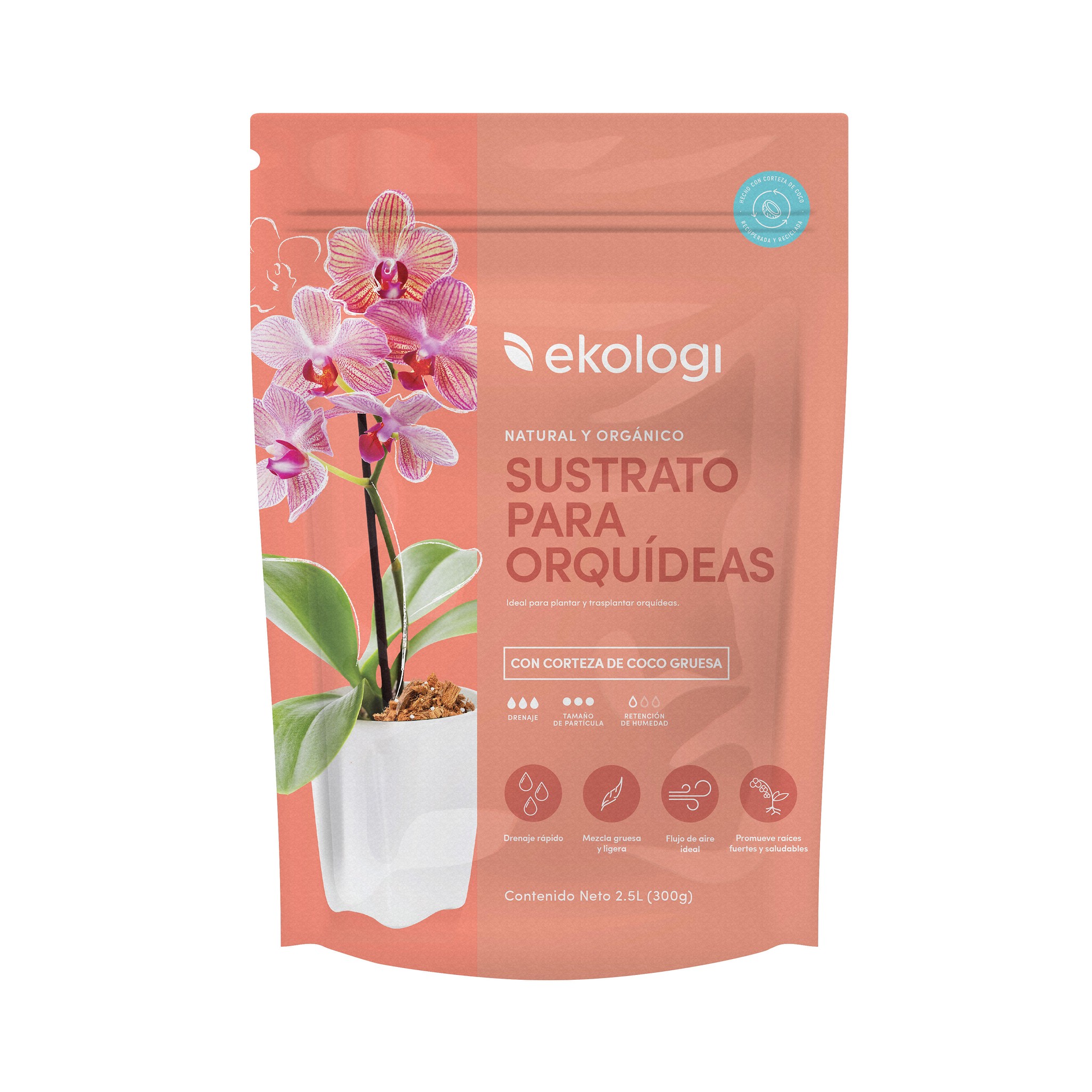 El sustrato es ideal para orquídeas, promoviendo un crecimiento saludable y vigoroso. Su empaque es atractivo y el contenido es suficiente para hasta tres macetas.