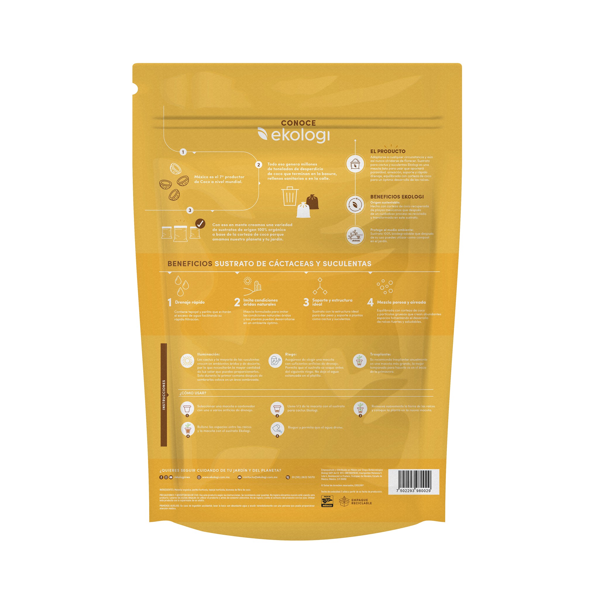 Adaptarse a cualquier circunstancia y aun así nunca olvidarse de florecer. Sustrato para cactus y suculentes EKOLOGI es una mezcla lista para usar que aportara porosidad, aireación, soporte y rápido drenaje, equilibrada con corteza de coco para un optimo desarrollo de las raíces.