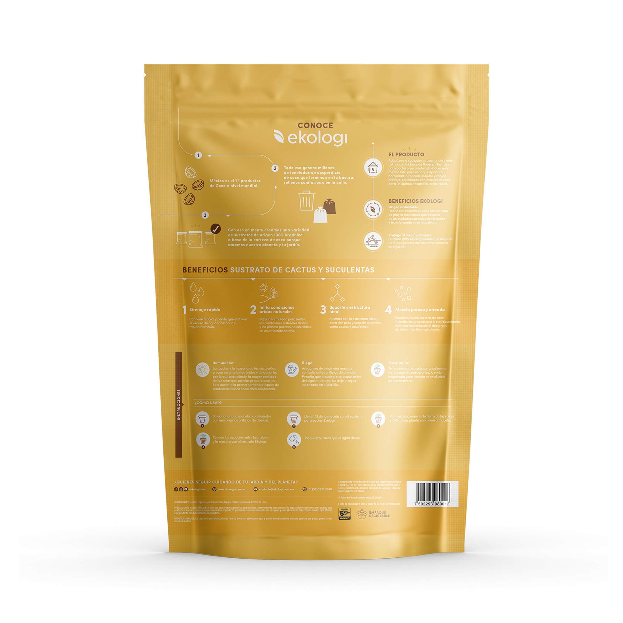 Adaptarse a cualquier circunstancia y aun así nunca olvidarse de florecer. Sustrato para cactus y suculentes EKOLOGI es una mezcla lista para usar que aportara porosidad, aireación, soporte y rápido drenaje, equilibrada con corteza de coco para un optimo desarrollo de las raíces.