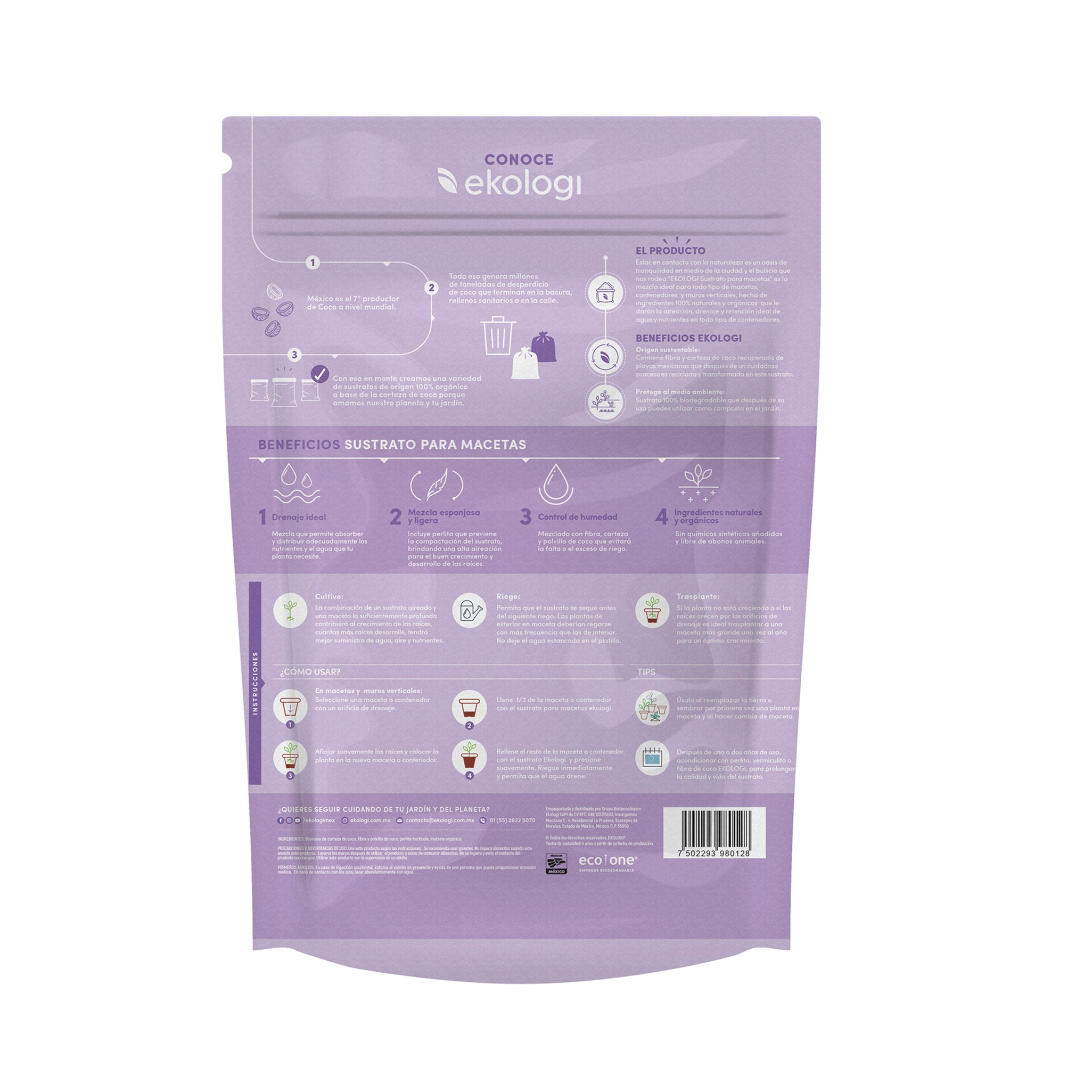 Estar en contacto con la naturaleza es un oasis de tranquilidad en medio de la ciudad y el bullicio que nos rodea "EKOLOGI Sustrato para macetas" es la mezcla ideal para todo tipo de macetas, muros verticales y germinadores, hecha de ingredientes 100% naturales y orgánicos que le darán la aireación, drenaje y retención ideal de agua y nutrientes en todo tipo de contenedores.